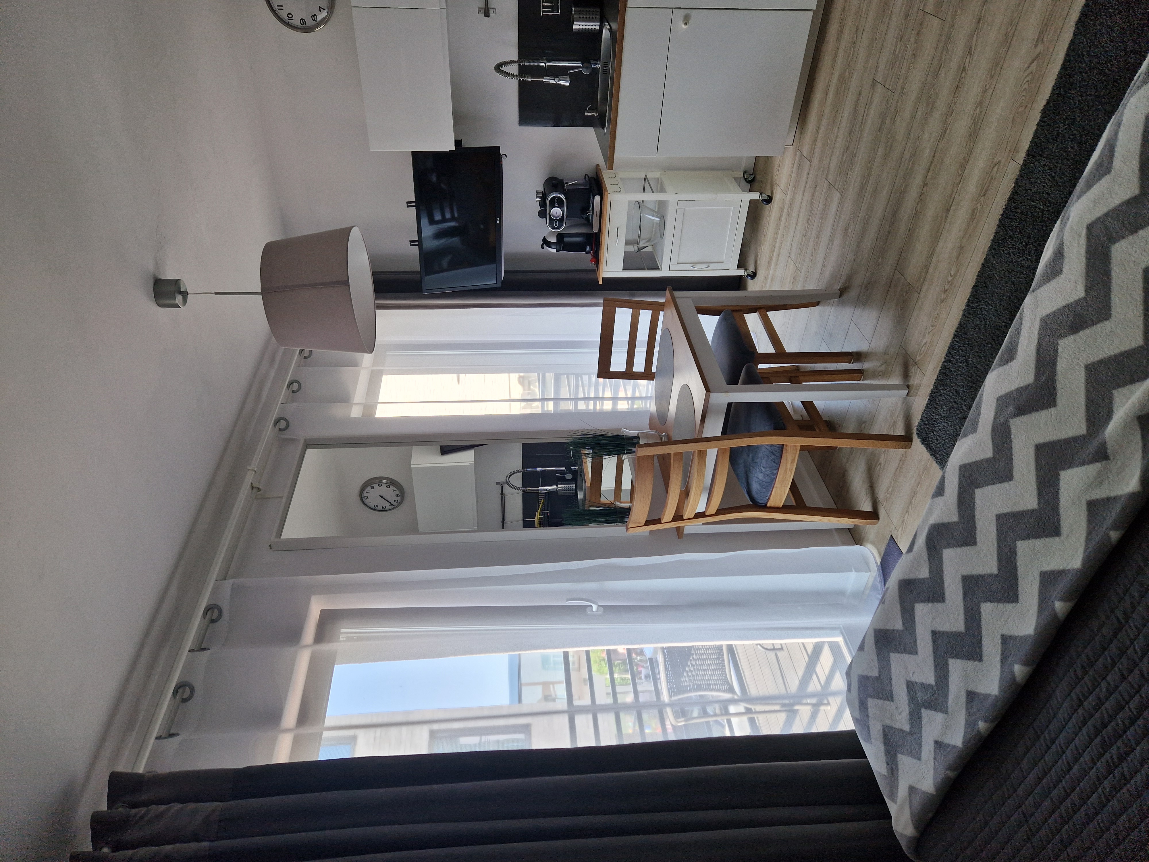 Sypialnia i salon z w pełni wyposażonym aneksem kuchennym. Balkon lub taras od strony północnej z widokiem na morze.